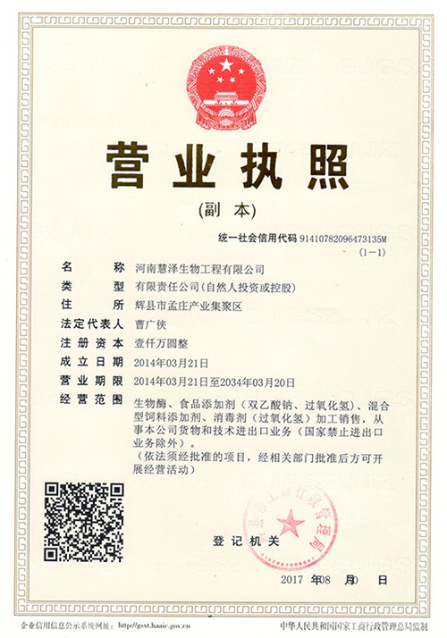 鄭州慧澤生化科技有限公司是一家充滿朝氣的科研生產(chǎn)型高技術(shù)企業(yè)。目前公司業(yè)務(wù)主要集中在精細(xì)化工、食品化工和微生物制劑行業(yè)。公司現(xiàn)已建成鄭州、焦作、新鄉(xiāng)三個(gè)生產(chǎn)基地,其中河南新鄉(xiāng)輝縣孟莊生產(chǎn)基地占地70畝,總投資達(dá)1.2億。現(xiàn)擁有年產(chǎn)100000噸過(guò)氧化氫消毒劑,年產(chǎn)8000噸的過(guò)氧化鈣和年產(chǎn)5000噸的雙乙酸鈉的生產(chǎn)線,同時(shí)開(kāi)設(shè)有生產(chǎn)總量5000噸的枯草芽孢桿菌、地衣芽孢桿菌等微生態(tài)制劑發(fā)酵生產(chǎn)車間。公司始終堅(jiān)持“以人為本,科技興企,品質(zhì)優(yōu)良,用戶滿意”的經(jīng)營(yíng)宗旨。為客戶創(chuàng)造價(jià)值更多的價(jià)值...